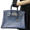 4. エルメス バーキン35 □F刻印 ブルー系 アルデンヌ ゴールド金具 ハンドバッグ HERMES 【中古】