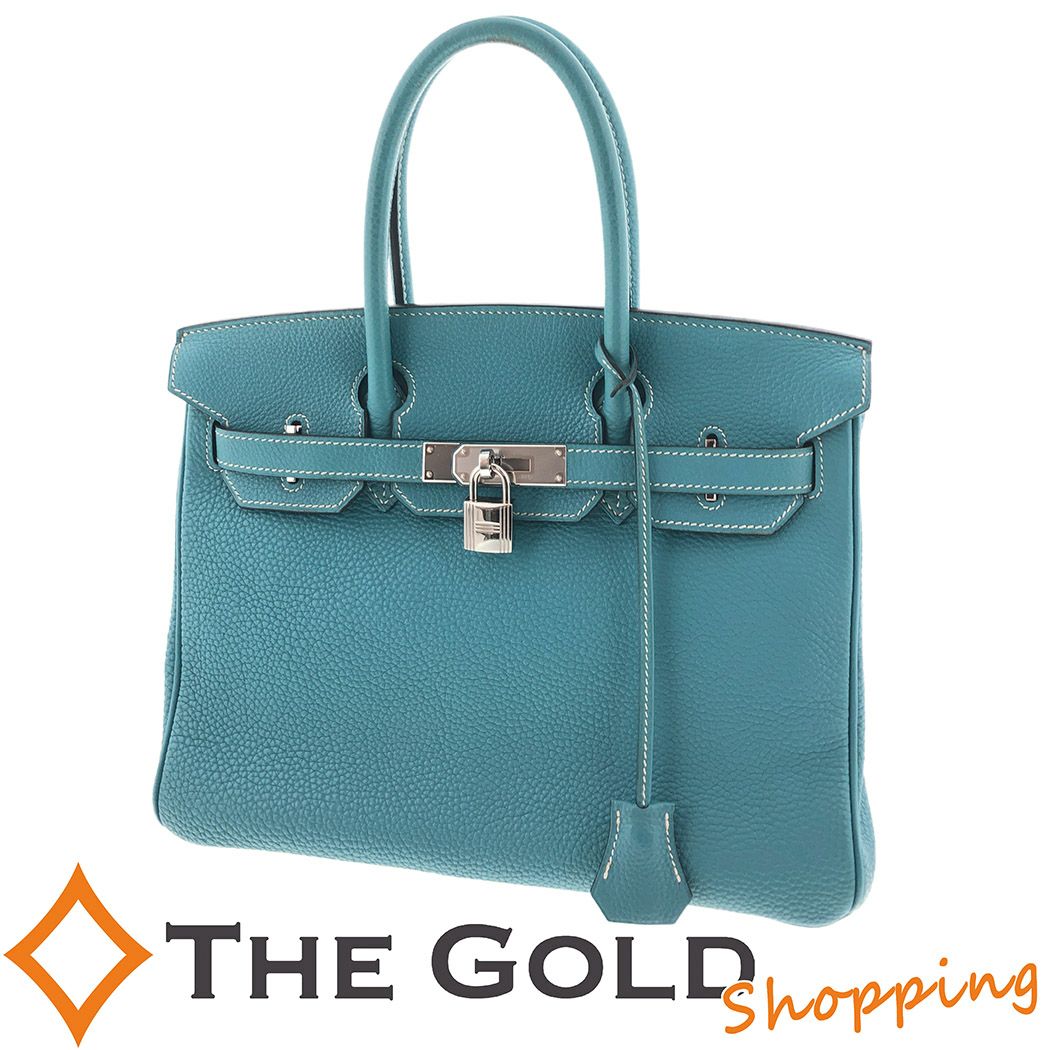 3. エルメス■バーキン 30 トゴ □I刻印 ブルージーン 2005年製 レザー 水色 青系 HERMES ハンドバッグ【中古】