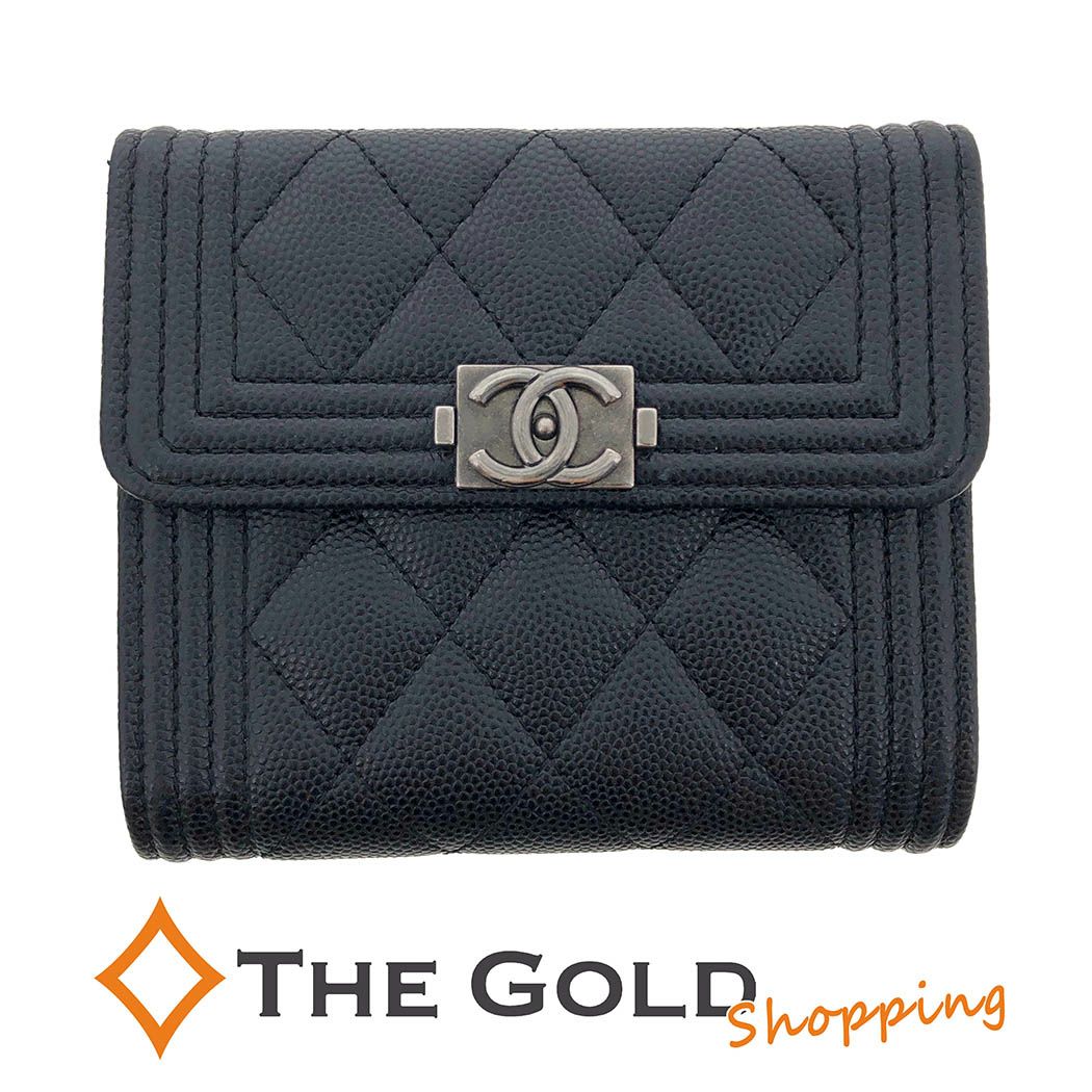 3. CHANEL スモールフラップウォレット A80734 ボーイシャネル キャビアスキン マトラッセ 三つ折り財布 レディース シャネル 【中古】