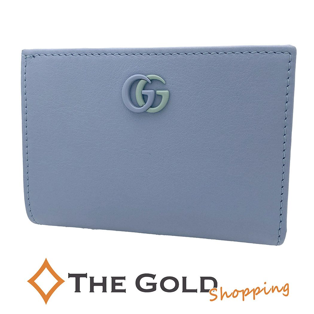 3. GUCCI ダブルG ウォレット グリーン インテリア 790063 レザー ライトブルー パステルグリーン 二つ折り財布 男女兼用 グッチ 【中古】