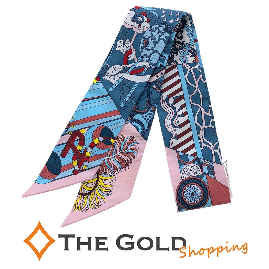6. エルメス■ 未使用品 ツイリー OMBRELLE AUX DUE 063464S 杖傘と決闘 スカーフ シルク100% HERMES ストール・スカーフ 【中古】