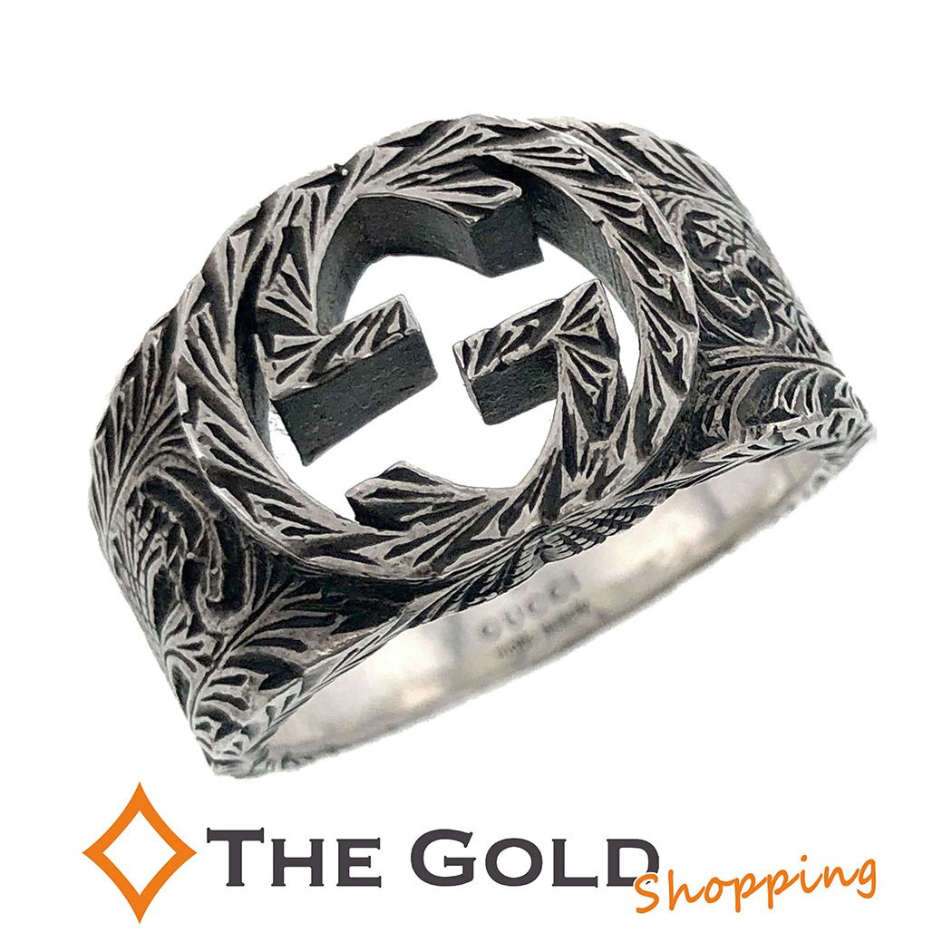 - グッチ インターロッキングG リング 455302 #25 Ag925 SV925 スターリングシルバー 銀 エングレービング GUCCI ジュエリー アクセサリー 指輪 【中古】