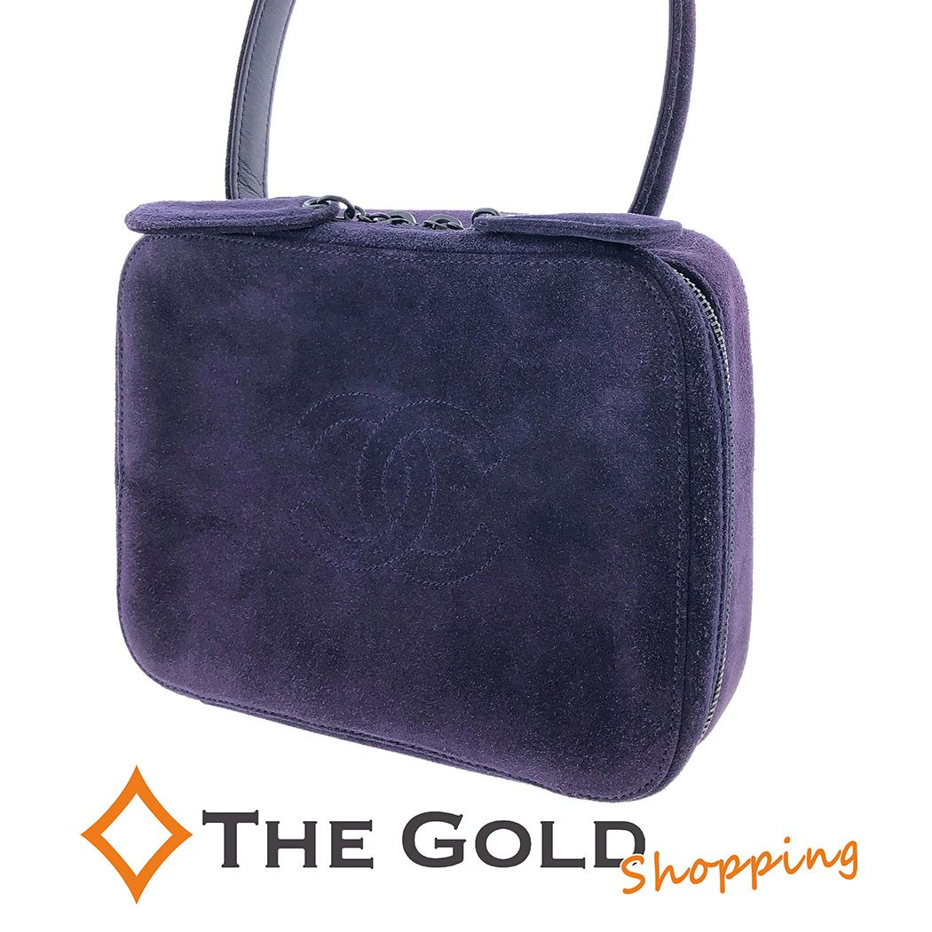 3. シャネル スエード スクエアハンドバッグ 5番台 トップハンドル パープル 紫 ココマーク CHANEL 【中古】