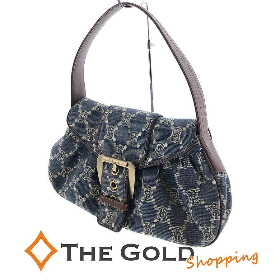 3. セリーヌ■トリオンフ デニム ワンショルダーバッグ 肩掛け ブルー マカダム CELINE ショルダーバッグ 【中古】