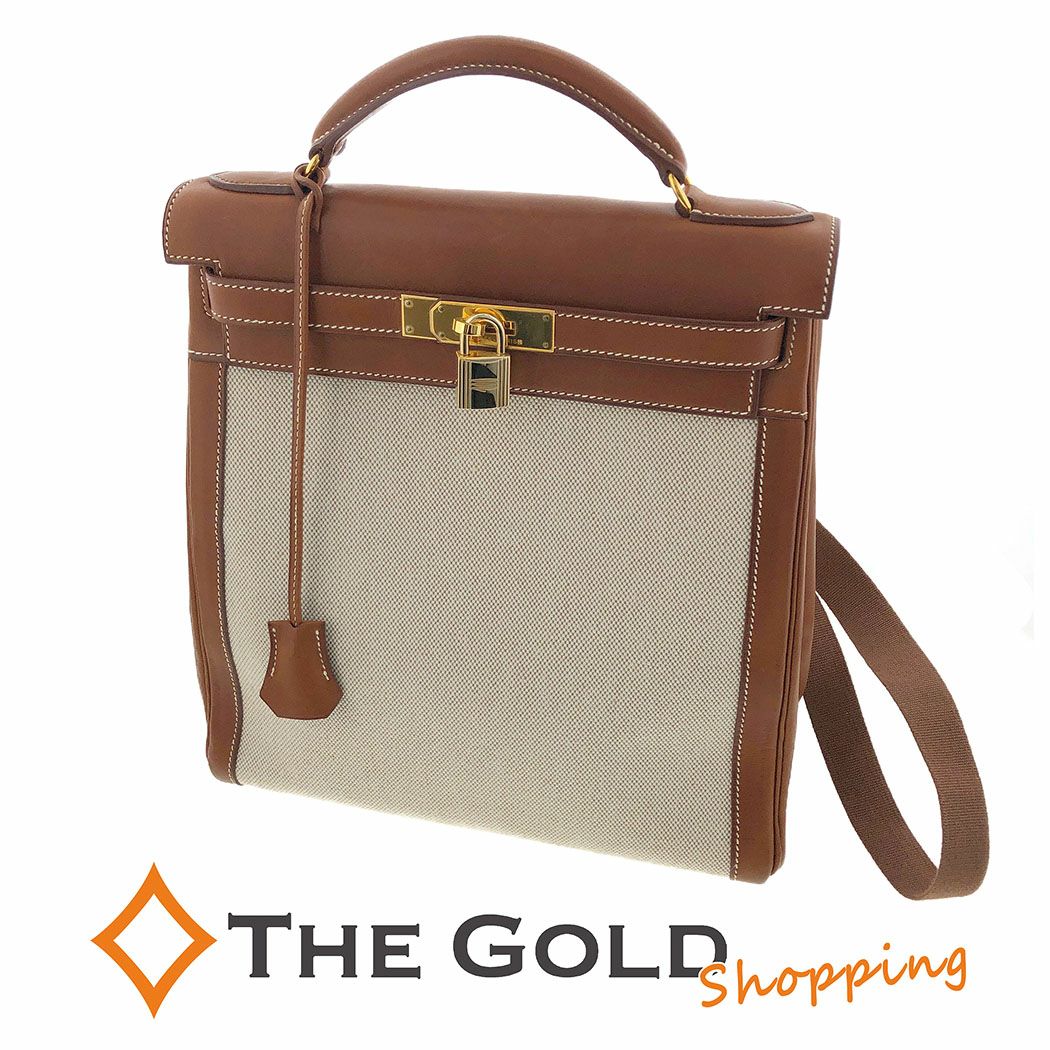 - HERMES ケリーアドGM □E 2001年 トワルアッシュ バレニア ベルト ナチュラル ベージュ ブラウン エルメス バックパック・リュック 【中古】