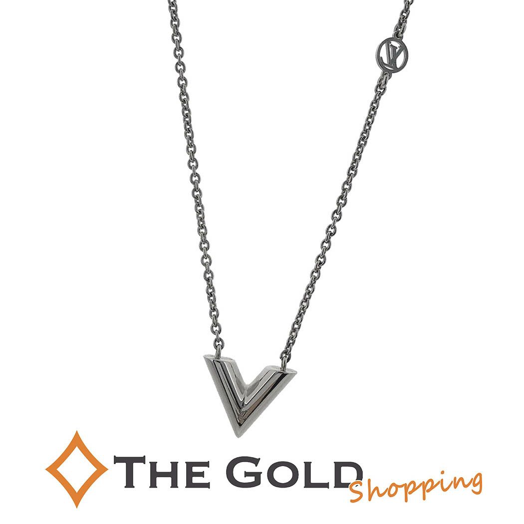 3. ルイヴィトン ネックレスエセンシャルV M63197 38cm メタル シルバー レディース LOUIS VUITTON 【中古】