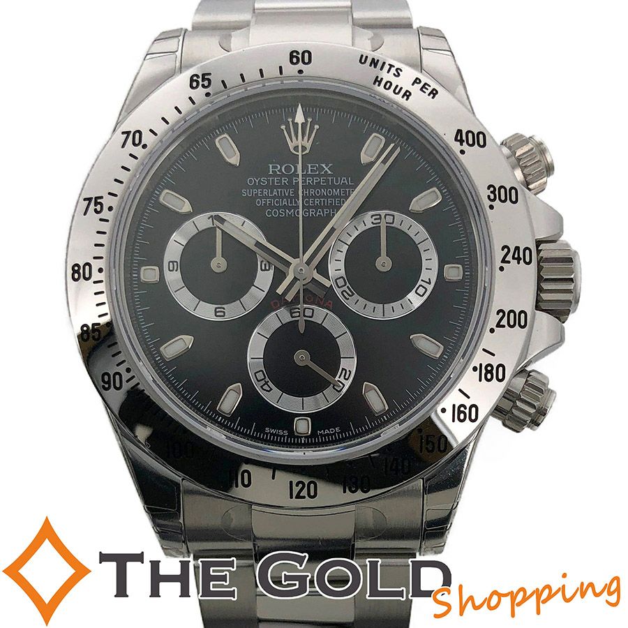 ROLEX コスモグラフ デイトナ 116520 2014年 並行 黒文字盤 梨地バックル クロノグラフ 腕時計 メンズウォッチ ロレックス 【中古】