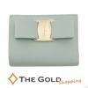 - Salvatore Ferragamo ヴァラ 二つ折り財布 22D515 コンパクトウォレット ヴァラリボン レザー LUCKY CHARME くすみグリーン サルバトーレフェラガモ 【中古】
