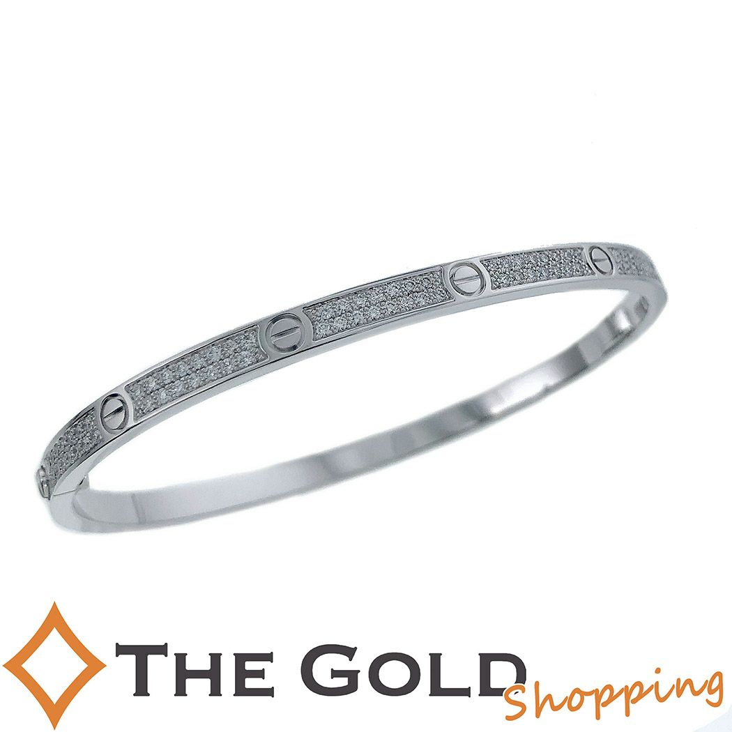 - 【中古】カルティエ■ラブ ブレス SM ♯17 パヴェ ダイヤ メーカー仕上げ済 K18 ホワイトゴールド スモールモデル LOVE ブレスレット CR N6710817 N6710800 Cartier ジュエリー アクセサリー 腕輪