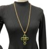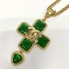 - シャネル クロス ロングネックレス グリポア 96A ゴールドカラー グリーン ガラス ココマーク ヴィンテージ アクセサリー CHANEL 【中古】