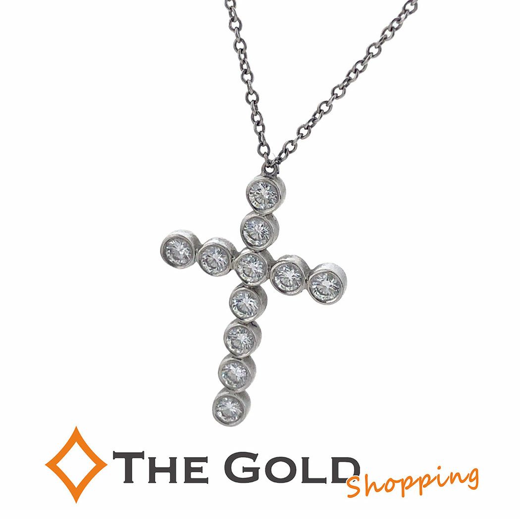- ティファニー スモールクロス ダイヤ ネックレス 41cm PT950 プラチナ ダイヤモンド レディース ジュエリー Tiffany&Co. 【中古】