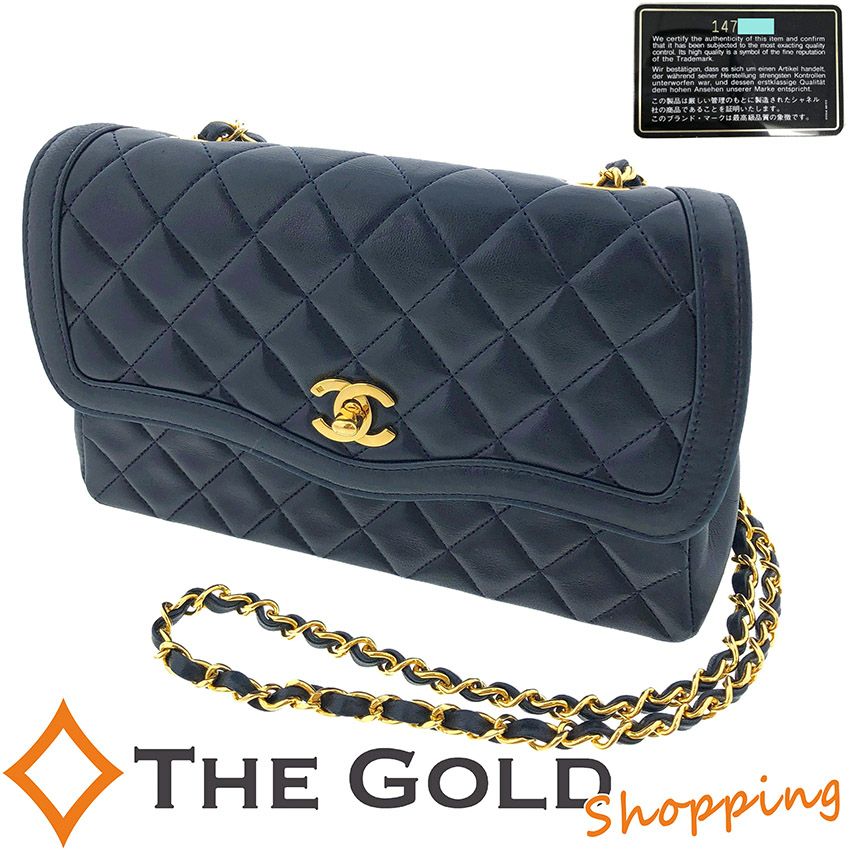 6. 【中古】シャネル■マトラッセ シングル チェーンショルダー ポーチ付き ネイビー 紺色 ラムスキン レザー CHANEL ショルダーバッグ