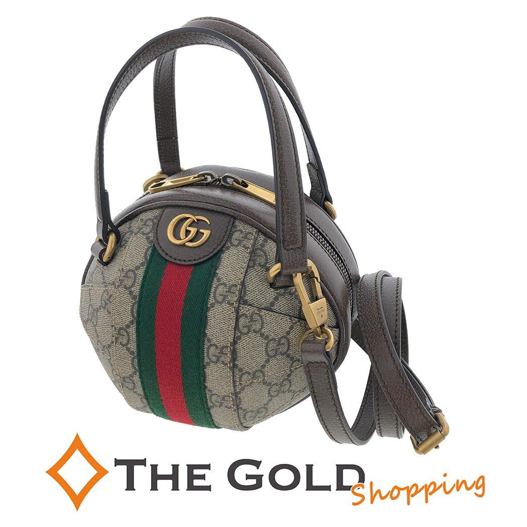 [現品限り 残り1個] グッチ オフィディア GGスプリーム ミニ ショルダーバッグ 574794 ボール 丸型 2WAY ポシェット ブラウン ヴィンテージ調 GUCCI ハンドバッグ 【中古】