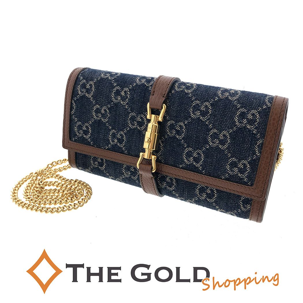 - グッチ ジャッキー1961 チェーンウォレット 652681 コンチネンタル ロング ウォレット 二つ折り GG デニム ロゴ ブルー ブラウン 斜め掛け GUCCI 長財布 【中古】