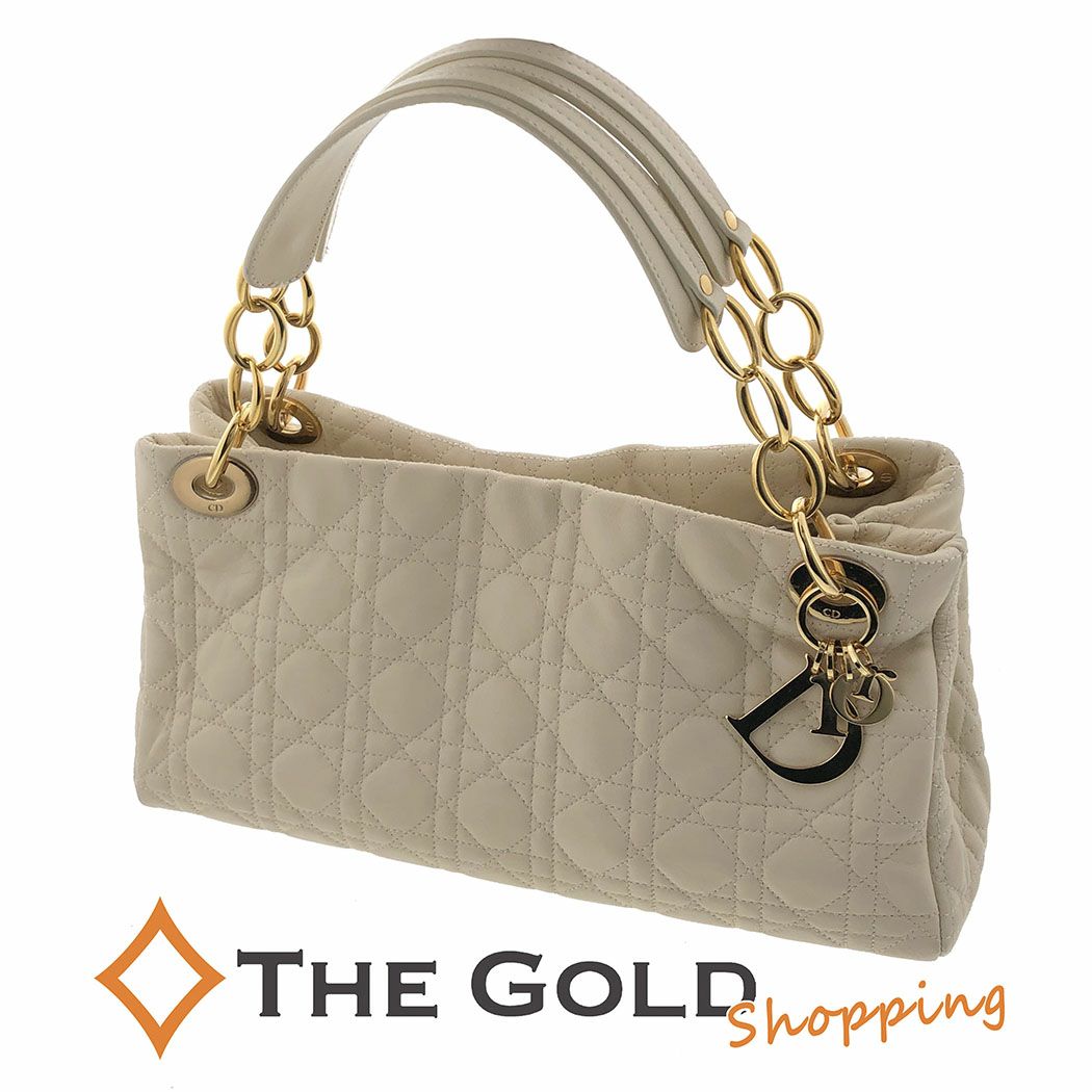 [現品限り 残り1個] Christian Dior■ハンドバッグ 208-BM カナージュ アイボリー ゴールド金具 クリスチャンディオール トートバッグ 【中古】