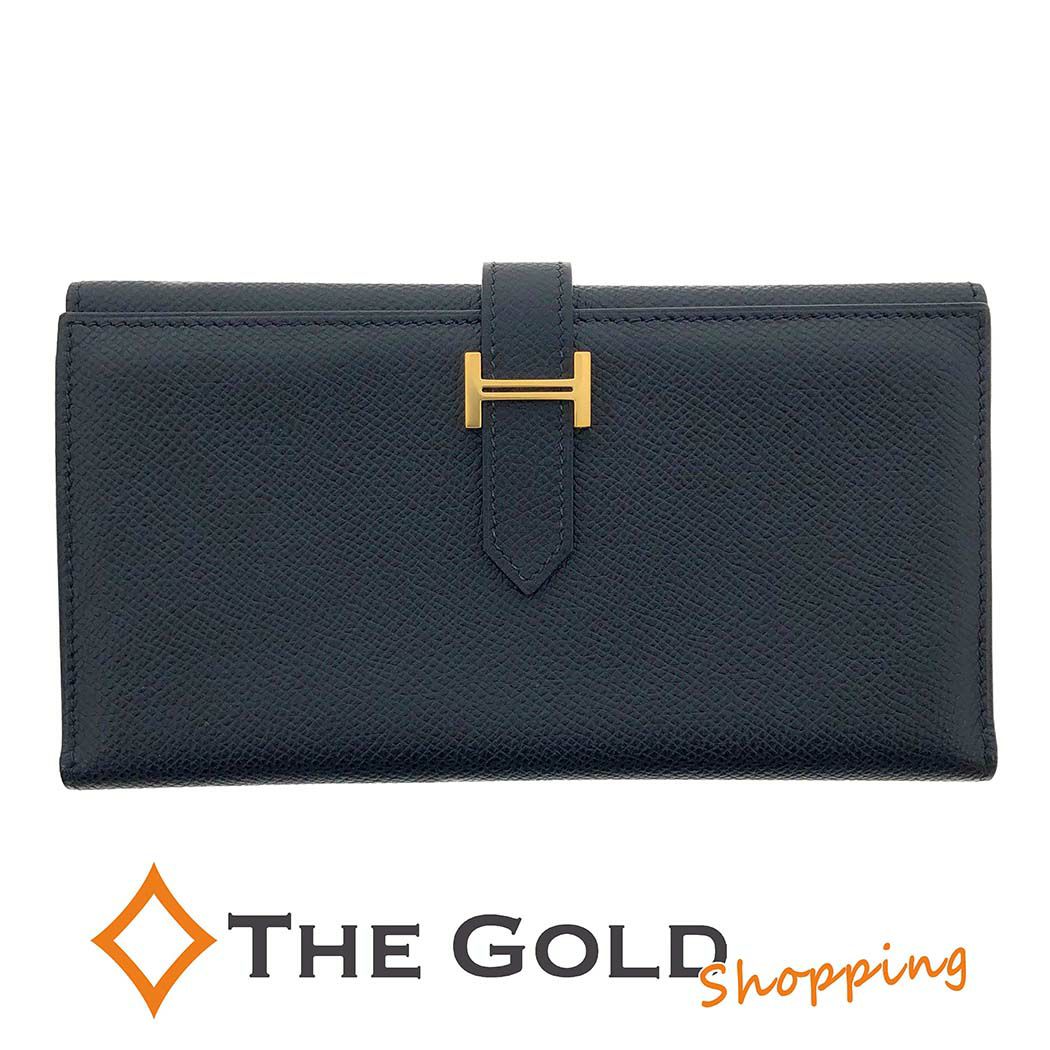 [現品限り 残り1個] HERMES■ベアンデュプリ ヴォーエプソン □I 2005年 ブラック ゴールド金具 ロングウォレット エルメス 二つ折り長財布【中古】