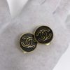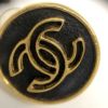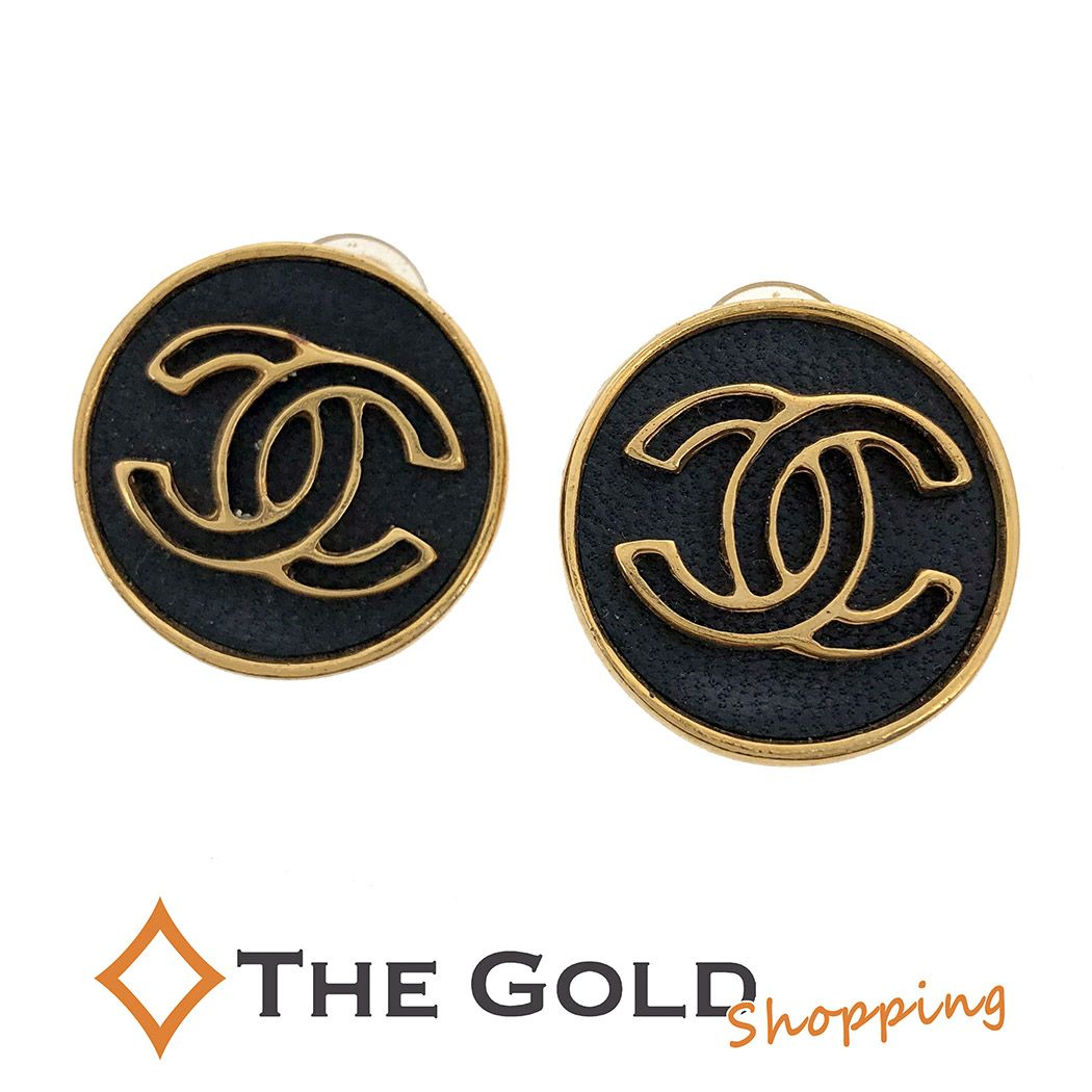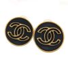 - CHANEL■ ココマーク ラウンドイヤリング サークル GP ゴールド レザー ブラック 蝶バネ式 クリップ ヴィンテージ シャネル 【中古】