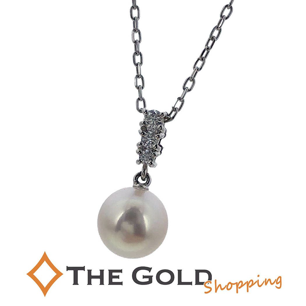 3. MIKIMOTO■ パールダイヤネックレス 42cm K18 WG パール ダイヤモンド ホワイトゴールド レディース ミキモト 【中古】