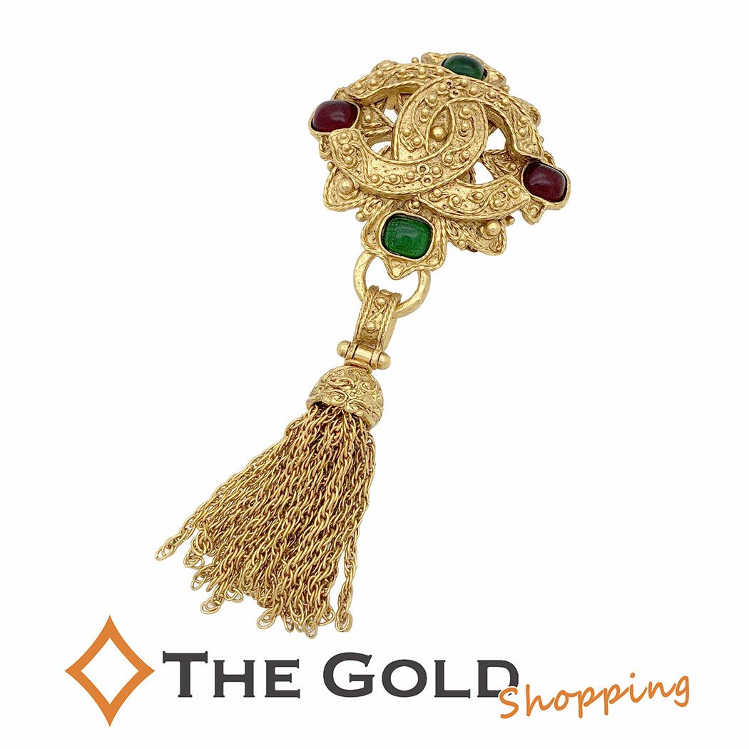 - CHANEL ココマークブローチ フリンジ GP グリポア ゴールド グリーン レディース アクセサリー シャネル 【中古】